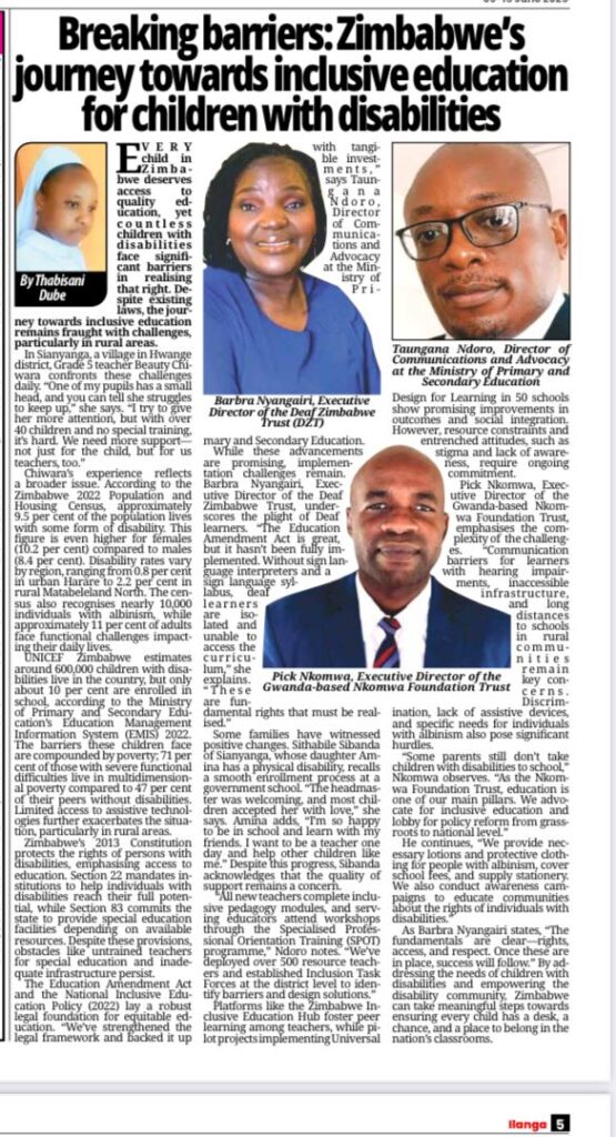 Breaking barriers:Zimbwes journey towards inclusive education for children with disabilities