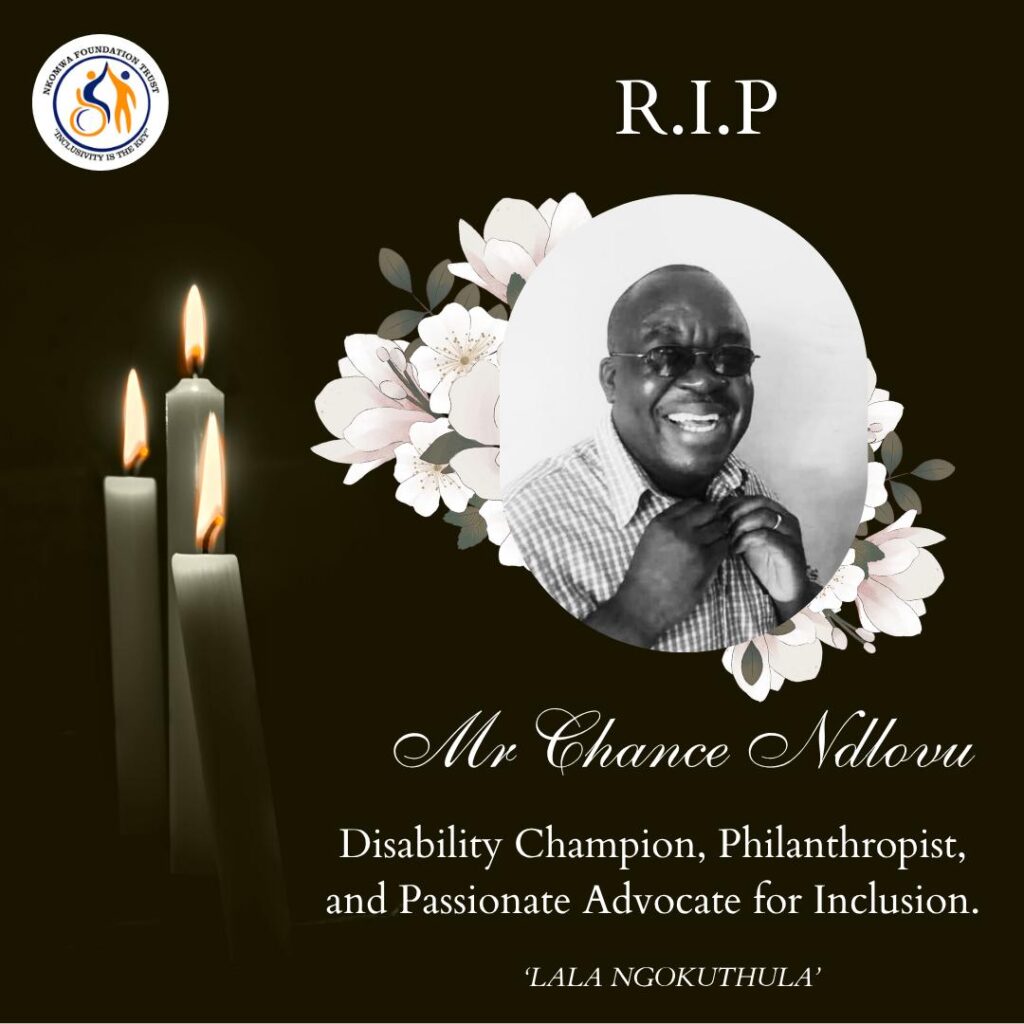 CONDOLENCE MESSAGE ON THE PASSING OF MR. CHANCE NDLOVUThe Board, Management, and Staff of Nkomwa Foundation Trust (NFT) join the nation and the Gwanda community in mourning the untimely passing of Mr. Chance Ndlovu, a dedicated disability champion, philanthropist, and passionate advocate for inclusion.Mr. Ndlovu was a selfless leader whose tireless efforts in promoting the rights and dignity of persons with disabilities will never be forgotten. He worked relentlessly to ensure that marginalized voices were heard and that disability inclusion became a lived reality, particularly in Gwanda District.Beyond his advocacy work, Mr. Ndlovu was a generous philanthropist who supported several schools in the Gwanda community, often going beyond the call of duty to uplift and empower the next generation. His acts of kindness and unwavering commitment to community development made him a treasured pillar of hope.At NFT, we were honoured to work alongside Mr. Ndlovu. His wisdom, compassion, and bold leadership inspired many, and his legacy will continue to guide our mission in promoting disability rights and inclusive development.As we reflect on his remarkable life, we extend our deepest condolences to his family, friends, and all those whose lives he touched. May we find comfort in the rich legacy he leaves behind.May his soul rest in eternal peace.